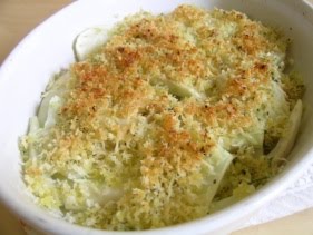 Fenykl očistěte. Do většího hrnce dejte vařit dostatečné množství vody, až se začne vařit, vymačkejte do ní půlku citronu. Přidejte fenykl rozebraný na jednotlivé listy, nebo nakrájený na klínky a povařte dvě minuty. Fenykl vyndejte, nechte okapat a rozprostřete ho na dno zapékací mísy. Osolte, posypejte parmezánem, strouhankou, vydatně zakapejte olivovým olejem. Zapékejte při 180 °C po dobu 25 minut. Výsledkem bude delikátní zeleninový chod, který může sloužit buď jako příloha, nebo v kombinaci například s bramborovou kaší jako hlavní chod.